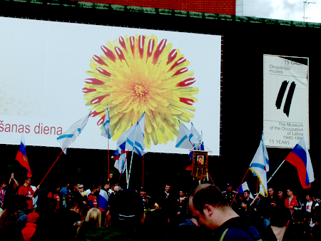 а ещё мы увидели чуваков, которые стояли и держали русские и андреевские флаги, а ещё икону ахаха на фоне музея оккупации(че за музей вообще, там внутри гитлер что ли лежит, тупое здание какое-то :gigi: ). там люди как сумасшедшие были. мы подошли сфоткацца. я поворачиваюсь и смарю чувак мне чуть ли не в лицо камерой сваей и вообще он меня напугал. а мы спалились, мы вообще пришли поржать над ними. xD